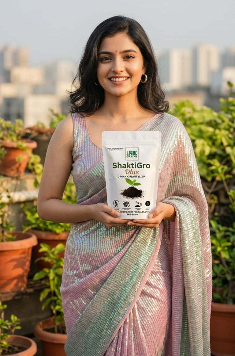 ShaktiGro Plus is 100% organic Soil booster combines NPK, micronutrients, growth hormones, and natural plant protectors in a single 950g package, eliminating the need for multiple plant care products